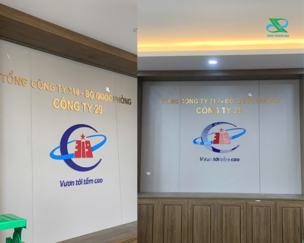 Nhiều doanh nghiệp đã lựa chọn Đông Phương để thi công biển tên công ty bằng chữ inox vàng gương tạo hiệu ứng tương phản sang trọng. Kiểu biển này rất phù hợp cho các văn phòng, showroom, ngân hàng, spa… muốn thể hiện đẳng cấp và sự uy tín ngay từ không gian ngoại thất.